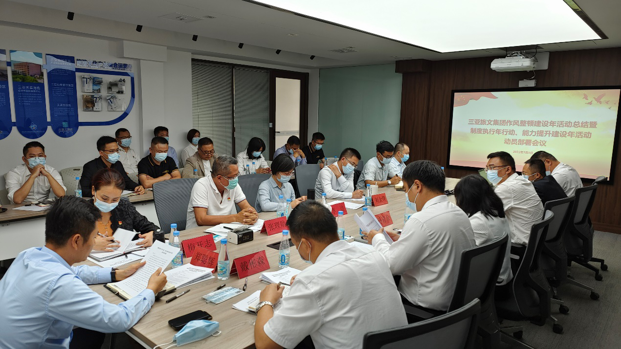 近期,三亚旅文集团召开作风整顿建设年活动总结暨制度执行年行动、能力提升建设年活动动员部署会议,会议传达学习了周红波同志在三亚市制度执行年和能力提升建设年活动上的动员讲话精神、通报了集团作风整顿建设年活动召开情况,并就集团召开制度执行年行动、能力提升建设年活动进行了部署。会议由集团党委书记、董事长郑聪辉主持,集团党委班子成员、经营班子成员,各成员企业领导班子成员,集团公司总助、总监及各部门负责人参加会议。