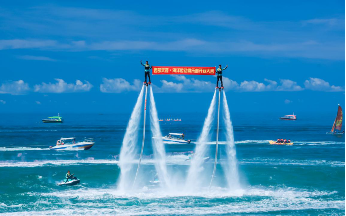 西部天涯•海洋运动俱乐部正式开业亮相,仅仅是大幕拉开,未来公司将不断创新前行,致力于打造海南高端水上运动目的地,为游客体验高品质水上运动给予新去处,成为三亚旅游崭新的游玩地标。
