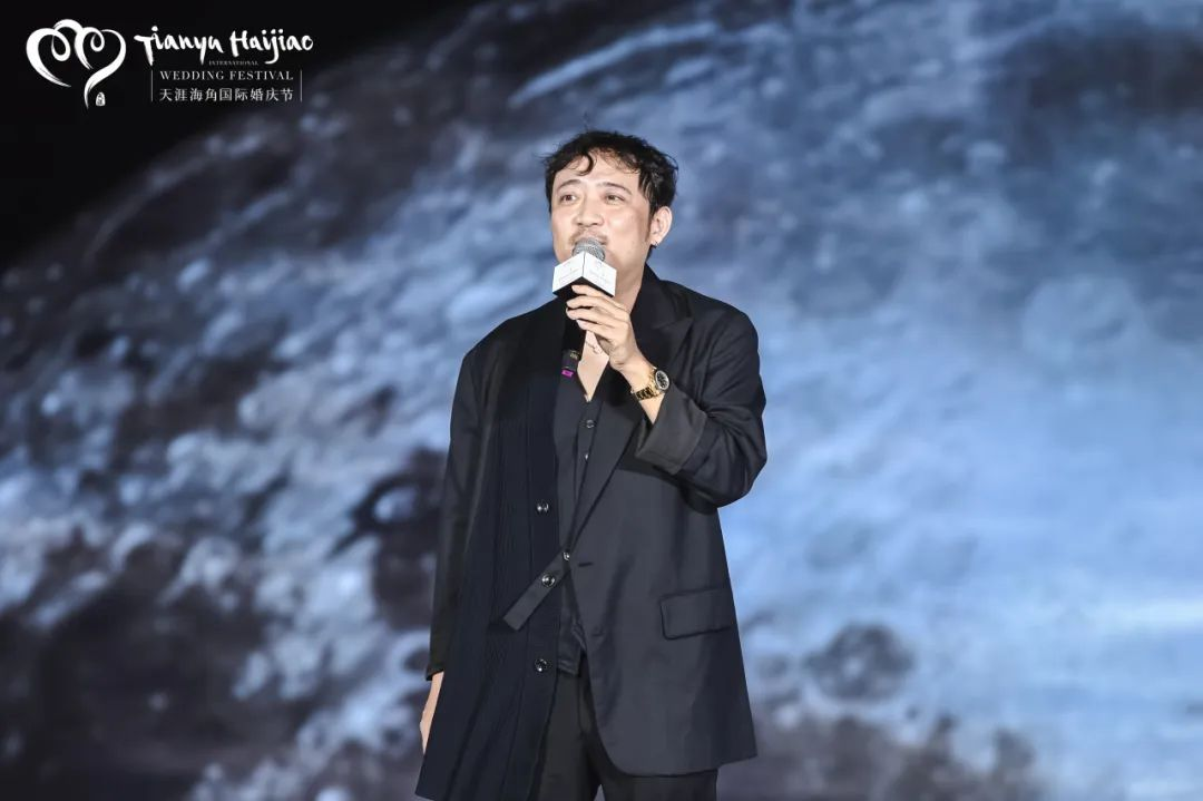 “今天的中式婚服很契合我所憧憬的中式婚礼。”学长赵小浪是一位拥有百万粉丝的自媒体达人,他携带恋人塔晓佳,作为旅行CP嘉宾情侣参加了本届天涯海角国际婚庆节开幕式。他表示,天涯海角国际婚庆节是国内最具知名度的婚庆节IP,慕名已久,此次接到邀请参加,欣赏到如此华丽的高定中式婚服,他也将从这一场活动中去寻找属于自己婚礼的灵感和浪漫定制。