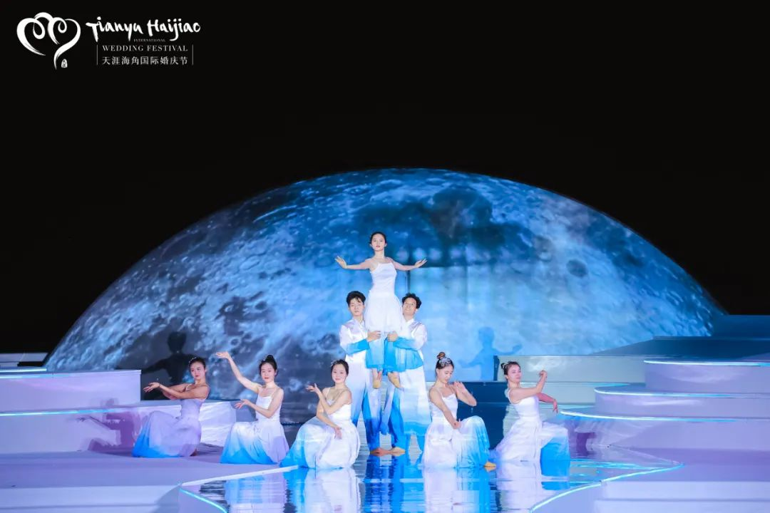 当幸福感满满的天涯婚典婚礼仪式结束后,一曲舞蹈《天涯共此时》为天涯海角婚庆节开幕式画上唯美的句号。