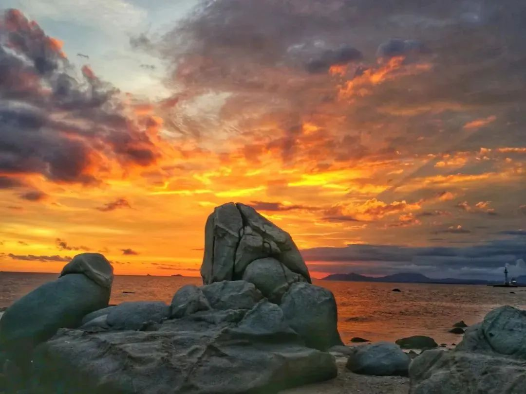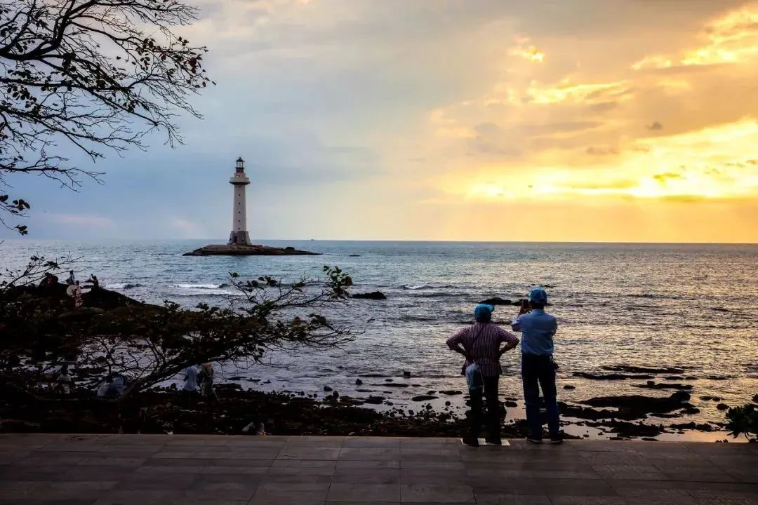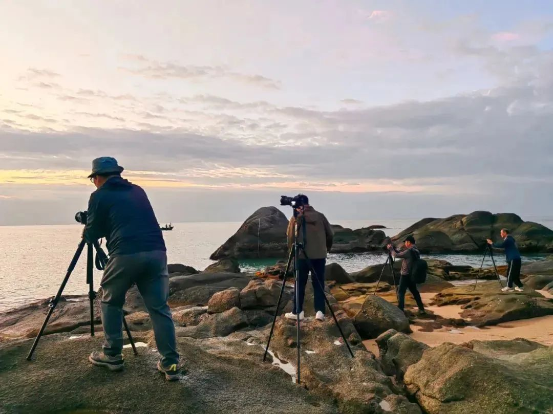 参加此次采风活动摄影家们,满怀激情用镜头抓拍和捕捉大小洞天旅游区最美的自然风光与人文景观:椰影婆娑的海边,夕阳西下带来了光影盛宴,蜿蜓曲折的滩涂礁石,闪烁着迷人的金色光芒;在落日余晖中,海边灯塔的剪影显得格外优雅,它默默地凝视着无尽的海洋,为归航的船只燃起希望之光……这些美景都成为摄影家们拍摄创作的最佳题材。采风现场,一些摄影家还运用现代无人机航拍设备,高空俯拍景区山、海、石、林的美景画面,创作了不少风光佳作。