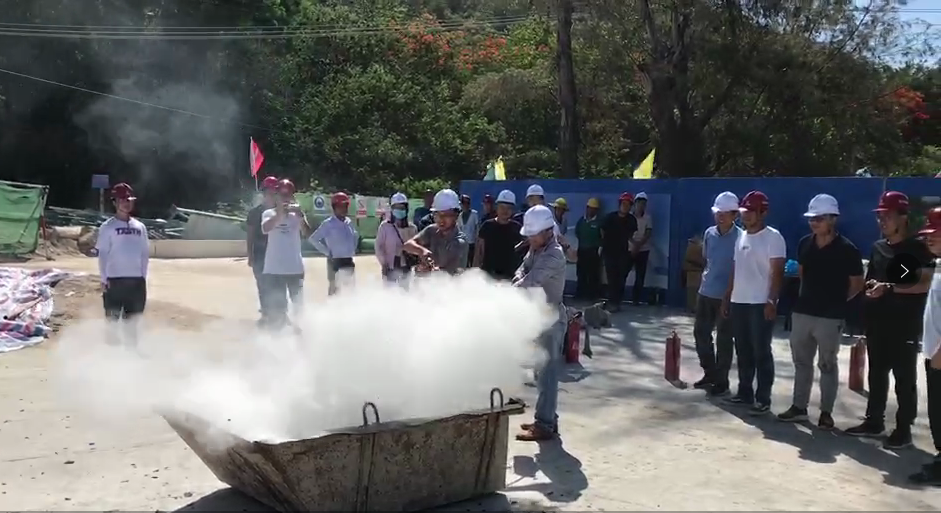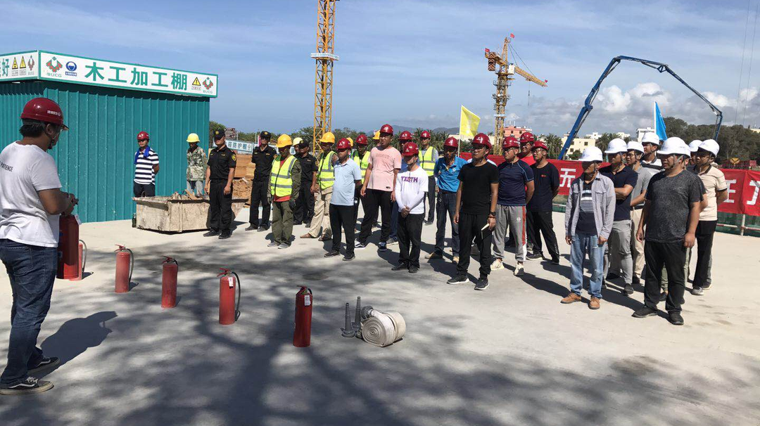 三亚旅文集团下属成员企业文产公司联合项目施工单位召开消防安全应急演练,以实地演练的形式召开现场灭火、应急处置、伤员救治、现场恢复等演练项目,有效提高一线从业人员的应急处置能力和应急救援水平。
