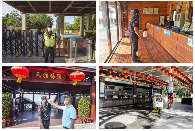 疫情期间,天涯海角工作人员合理配置持续召开防疫工作全力守护景区的安全