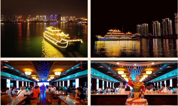 在三亚美丽的夕阳伴随下品尝“永乐定食”, 赏以郑和下西洋为背景的精彩歌舞表演,中华建筑史的精髓在郑和宝船仿古的建筑风格上得以显现,现代高科技表现手段和中国五千年灿然的文化在郑和宝船上得到完美的融合。